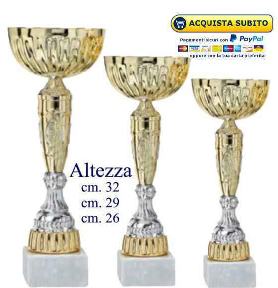 Tris di coppe in metallo. Componenti intermedio in ABS e base in marmo.