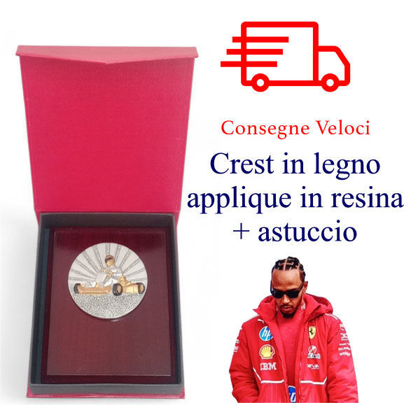 Crest in legno cm. 11x14 con Applique in resina e astuccio. Il crest è fornito con un supporto per essere appoggiato su di un piano.