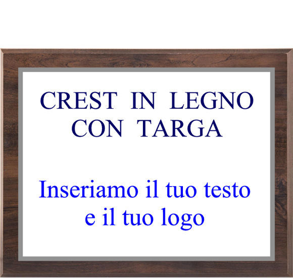 Crest rettangolare in legno cm. 23 x 18 con targa in alluminio cm. 16 x 12. Personalizzazione dell'oggetto con il tuo testo ed eventuale logo inclusa nel prezzo.Oggetto fornito con scatola in cartone.