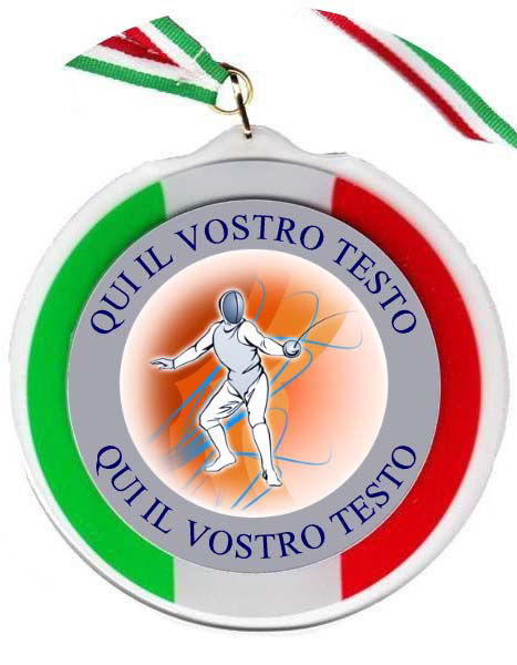 Medaglione in metacrilato diametro esterno cm. 12 fornito con nastrino tricolore.