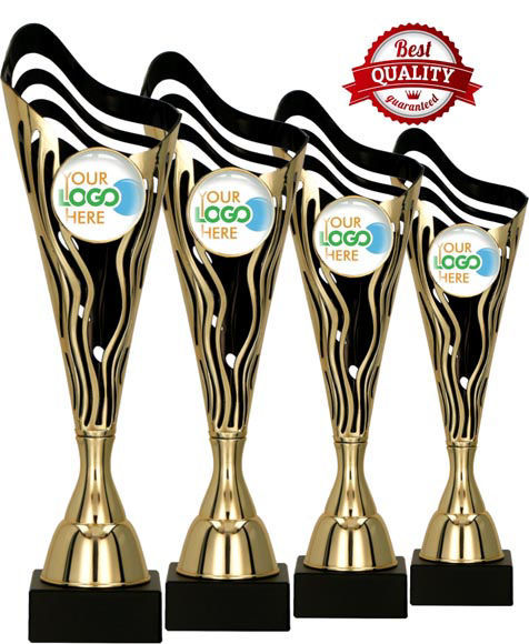 Serie di coppe black/gold in ABS con base in marmo.