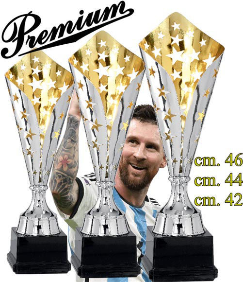Elegante coppa dal design allungato in metallo laserato bicolore.