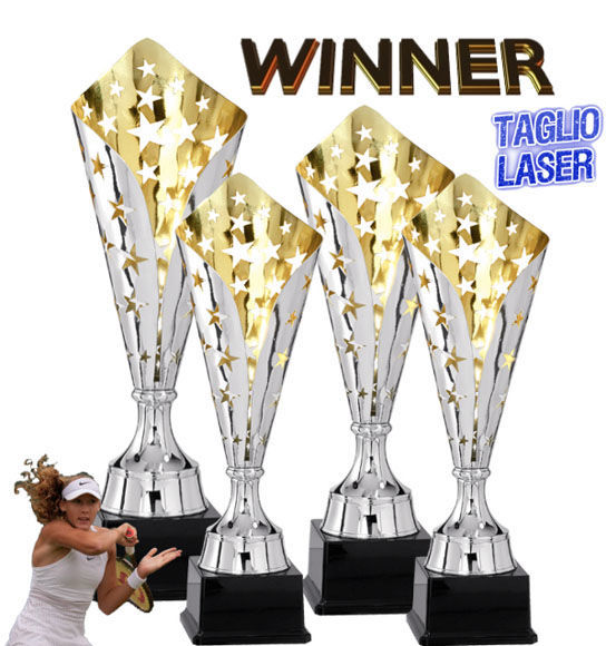 Elegante coppa dal design allungato in metallo laserato bicolore.