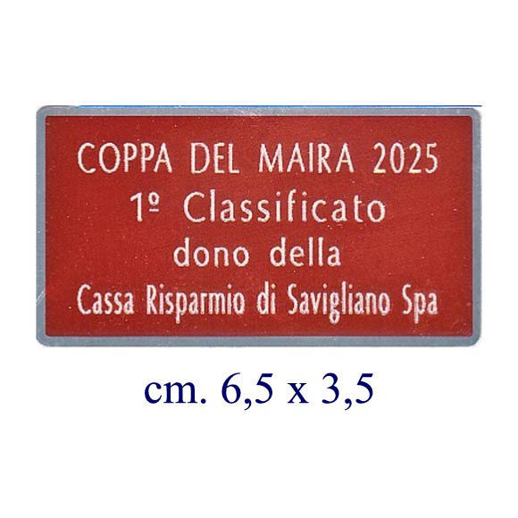 Targhetta in alluminio di colore rosso mm. 65 x 35.