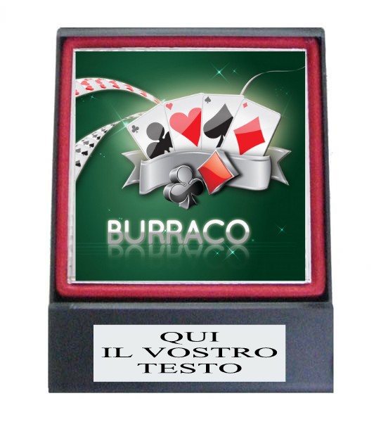 Targhetta cm. 7,8 x 7,8 in alluminio color argento. con astuccio cm. 9 x 12. L'astuccio aperto funge da supporto per la targhetta stessa. Personalizzazione dell'oggetto inclusa.