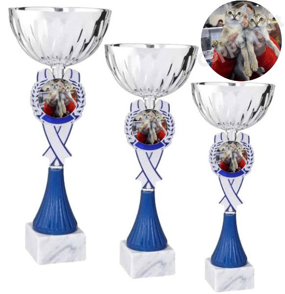 Coppa Trofeo con tazza in metallo. Base in marmo.