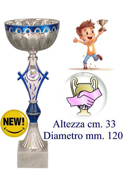 Coppa con tazza in metallo e base in marmo.Componenti intermedi in policarbonato. Inserto con adesivo in rilievo Altezza cm. 33 - Diametro mm. 120.Personalizzazione sul fronte della base, con testo e logo, inclusa nel prezzo.