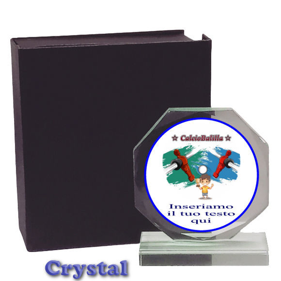 Premio Cristal con BOX. Altezza cm. 9Personalizzazione mediante l'applicazione di un adesivo in poliestere anche con il tuo testo.