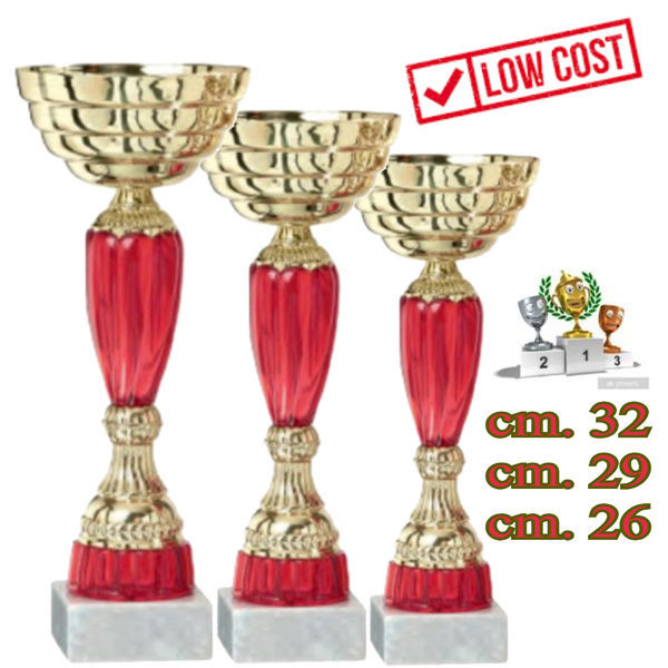 Tris di coppe in metallo con misure a scalare.