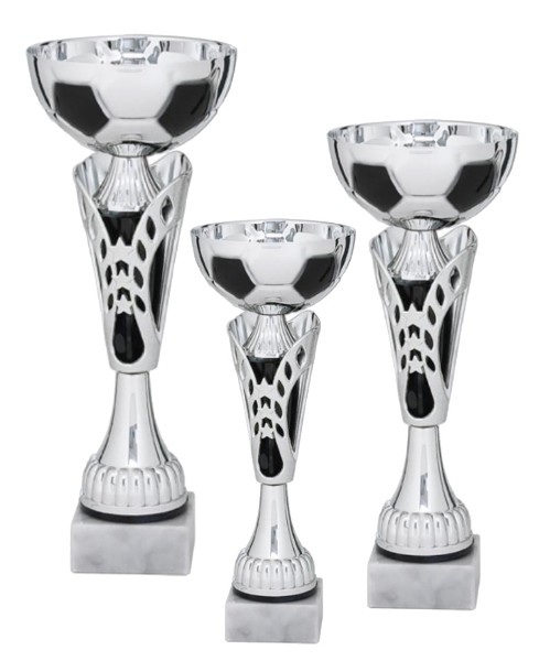 3 Coppe con tazza in metallo e componenti intermedi in ABS. Base in marmo.