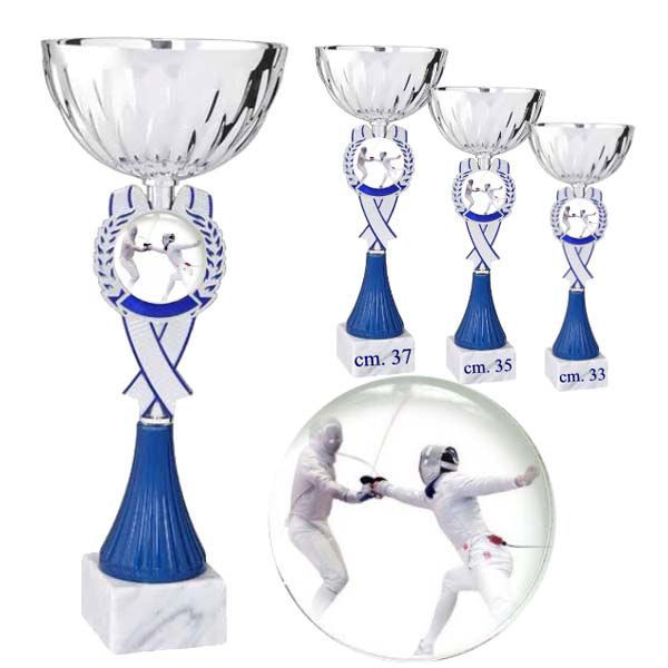 Serie di 3 Coppe con tazza in metallo. Base in marmo.