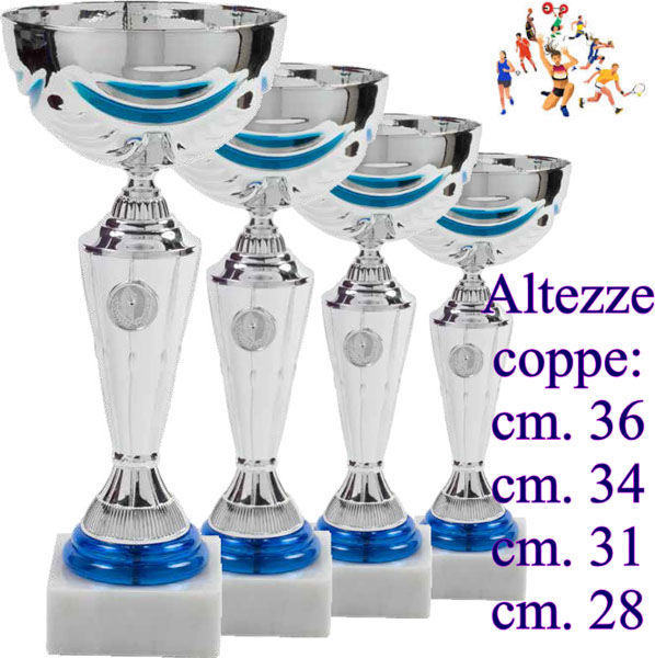 4 Coppe in metallo con componenti intermedi in ABS e base in marmo.