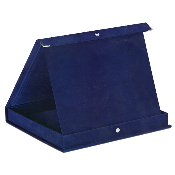 Astuccio blu in legno vellutato. Dimensioni esterne cm. 21 x 17
