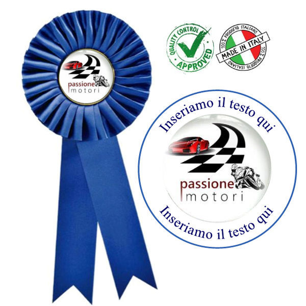 E' possibile personalizzare la coccarda con del testo che verrà inserito intorno al logo.