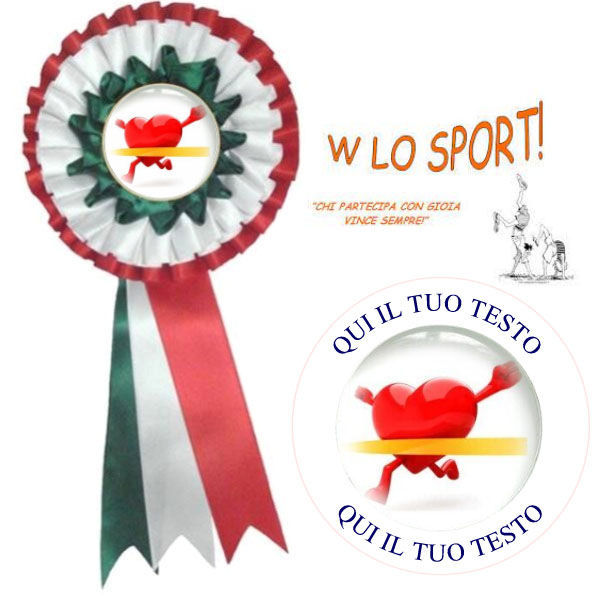 E' possibile personalizzare la coccarda con del testo che verrà inserito intorno al logo.