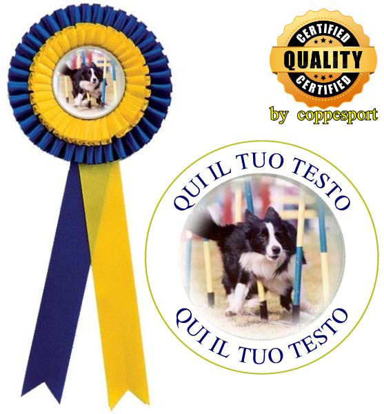 E' possibile personalizzare la coccarda con del testo che verrà inserito intorno al logo.
