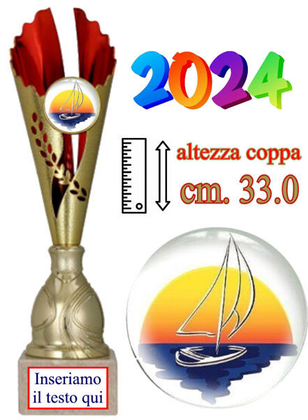 Coppa con tazza e componente in ABS. Base in marmo bianco. Altezza cm. 33Inserto Ø mm. 50 con adesivo in rilievo di alta qualità.