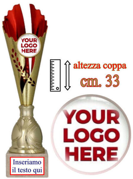 Coppa con tazza e componente in ABS. Base in marmo bianco. Altezza cm. 33Inserto Ø mm. 50 con adesivo in rilievo di alta qualitàcon il tuo logo.
