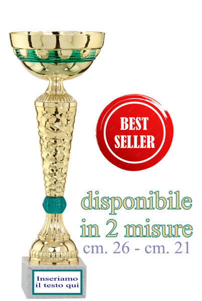 Coppa con tazza in metallo e base in marmo. Componenti intermedi in policarbonato.