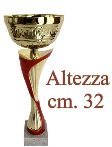 Coppa con tazza in metallo color oro e base in marmo. Componente in ABS. Altezza cm. 32 - Diametro cm. 12