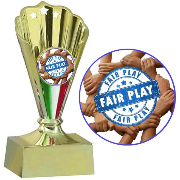 Mini premio Coppa in ABS. Altezza cm. 12,5 - Inserto con adesivo in rilevo di alta qualità.