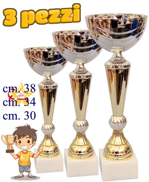 Set di 3 Coppe con tazza in metallo. Componenti intermedi in ABS e base in marmo.