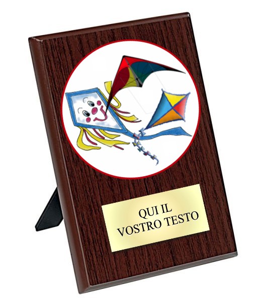 Crest in legno mm. 100 x 150 con supporto. Disco Ø mm. 70. Personalizzazione mediante l''applicazione di una etichetta inclusa nel prezzo.