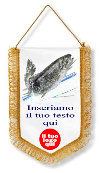 Gagliardetto pentagonale cm. 21 x 27 con frangia e cordoncino dorati. Asta e borchie in metallo. Fornito con busta protettiva in PVC. Personalizzazione con stampa in quadricromia su di un lato. Puoi personalizzare l''oggetto con del testo e con un tuo logo.