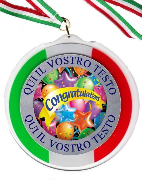 Medaglione in metacrilato diametro cm. 12 con nastrino tricolore.