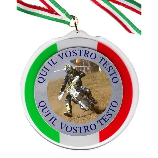Medaglione in metacrilato diametro esterno cm. 12 fornito con nastrino tricolore.