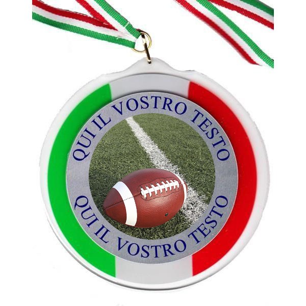 Medaglione in metacrilato diametro esterno cm. 12 fornito con nastrino tricolore.