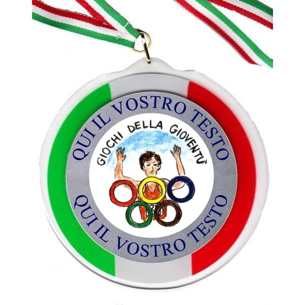 Medaglione in metacrilato diametro esterno cm. 12 fornito con nastrino tricolore.