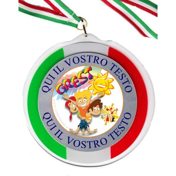 Medaglione in metacrilato diametro esterno cm. 12 fornito con nastrino tricolore.