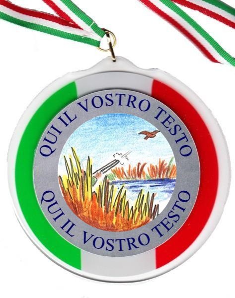 Medaglione in metacrilato diametro esterno cm. 12 fornito con nastrino tricolore.