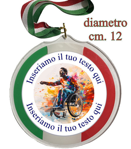 Medaglione in metacrilato diametro esterno cm. 12 fornito con nastrino tricolore.