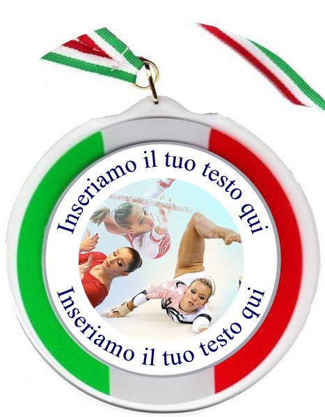 Medaglione in Metacrilato diametro cm. 12 con nastrino tricolore.