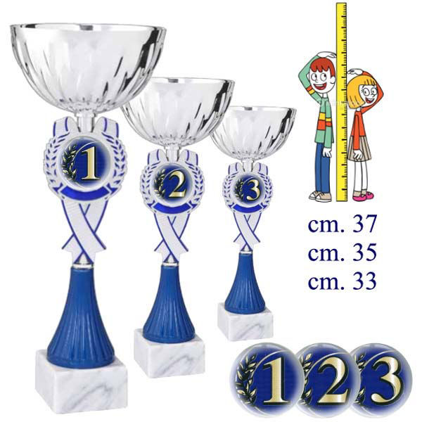 Serie con Coppe con tazza in metallo e base in marmo. Componenti intermedi in ABS.