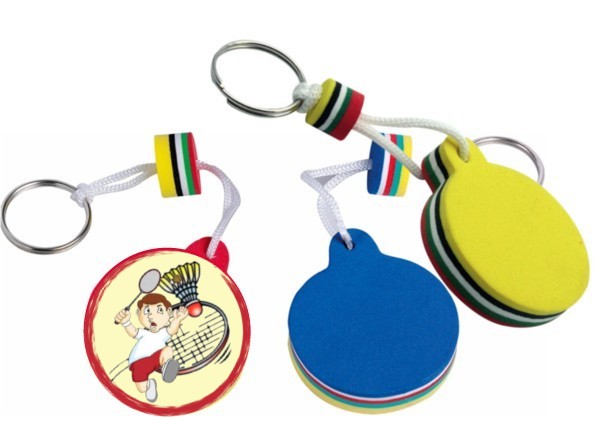 Portachiavi multistrato bicolore diametro mm. 50 con etichetta resinata adesiva effetto 3D.