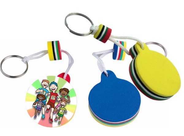 Portachiavi multistrato bicolore diametro mm. 50 con etichetta resinata adesiva effetto 3D.