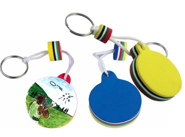 Portachiavi multistrato bicolore diametro mm. 50 con etichetta resinata adesiva effetto 3D.