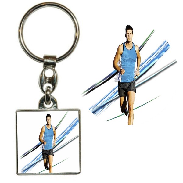 Portachiavi in metallo con inserto centrale resinato effetto 3D mm. 30 x 30