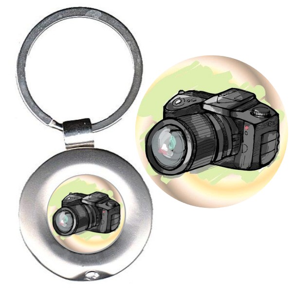 Portachiavi in metallo diametro mm. 36 con box. Inserto con adesivo in rilievo di alta qualità con logo. Il portachiavi è fornito con scatolina.