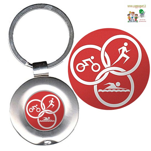 Portachiavi in metallo diametro mm. 36 Inserto con adesivo in rilievo di alta qualità. Il portachiavi è fornito con scatolina.