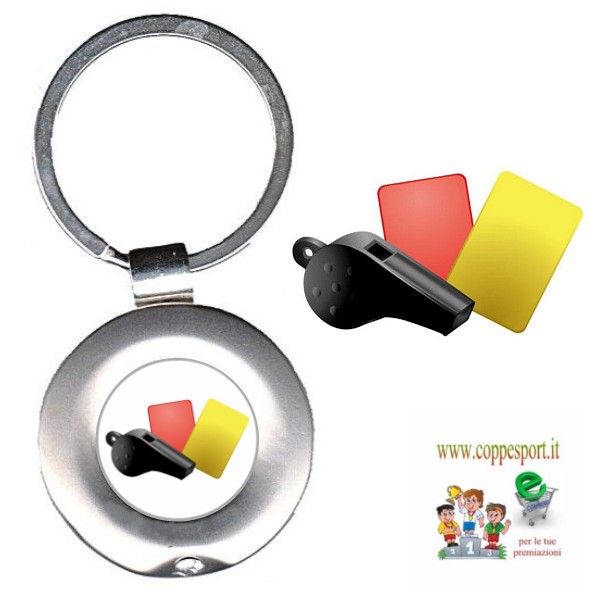 Portachiavi in metallo diametro mm. 36 con box. Inserto con adesivo in rilievo di alta qualità con logo per Arbitro. Il portachiavi è fornito con scatolina.