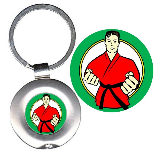 Portachiavi in metallo diametro mm. 36 con box. Inserto con adesivo in rilievo di alta qualità con logo premiazione Arti Marziali. Il portachiavi è fornito con scatolina.