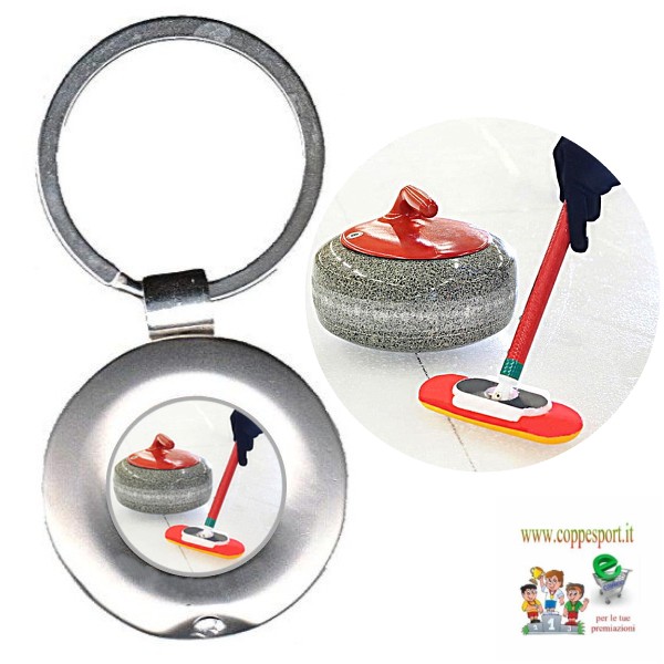 Portachiavi in metallo diametro mm. 36 con box. Inserto con adesivo in rilievo di alta qualità con logo. Acquista questo oggetto come gadget per il tuo evento di Curling. Il portachiavi è fornito con scatolina.