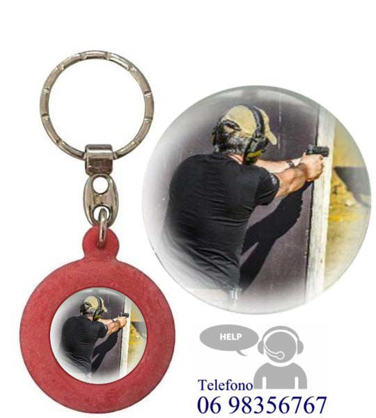 Portachiavi bifacciale di colore rosso in gomma profumata.