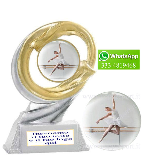 Trofeo in resina. Altezza cm. 17 Inserto Ø mm. 50 con adesivo in rilievo di alta qualità.
