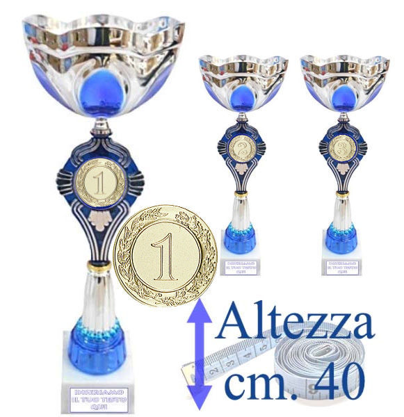 Coppa trofeo con tazza in metallo e base in marmo. Componenti intermedi in policarbonato.