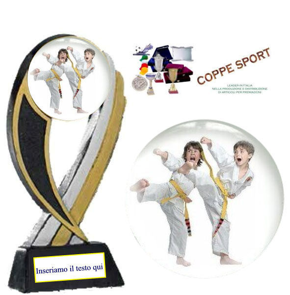 Trofeo in resina altezza cm.15 Inserto diametro mm. 50 con adesivo in rilievo di alta qualità con logo.
